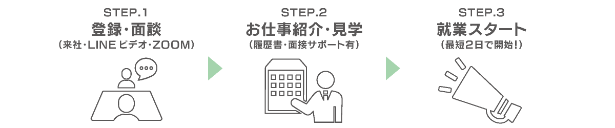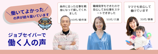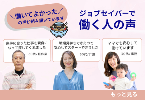 ジョブセイバーでは面談から就業後のフォローまで、各種業界に詳しい専任の担当者が、マンツーマンであなたのご希望に合ったお仕事を選んで紹介しサポートします!